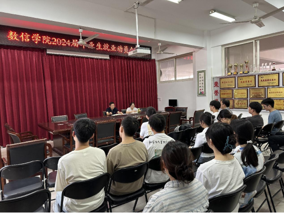 在2号实验楼3楼会议室召开数信学院2024届毕业生就业动员会。党总支副书记杨向宇,2020级辅导员张瑞楠,学院本科及硕士毕业生参加会议。