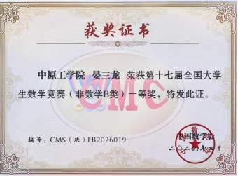 此次成绩的取得,是学院长期坚持“以赛促学、以赛促教”,扎实推进基础学科人才培养的体现。学院将继续深化数学课程建设,搭建更多学科竞赛平台,助力学子提升学术能力。(通讯员:高冉)