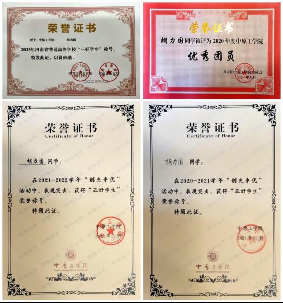 该生思想积极进步,综合素质能力较强,积极向党组织靠拢,宽于待人,严于律己,凡事以身作则,做好党员先锋模范作用是他对自己的要求。曾荣获河南省三好学生、校级优秀团员、校级五好学生2次。