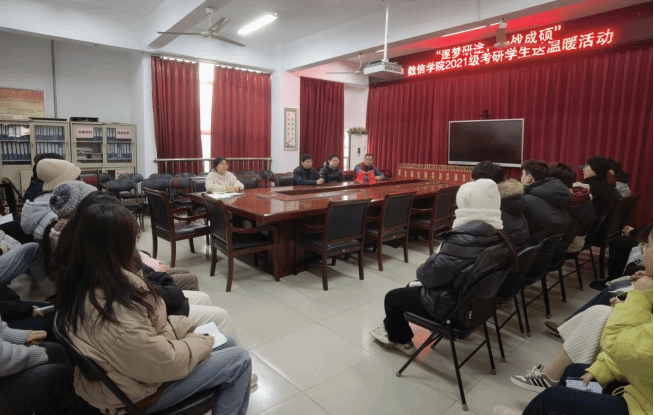 为增强考研学子备考信心,舒缓备考压力,以最佳状态迎接考试。12月13日上午,性爱网 在学院会议室召开了一场特别的“逐梦研途,一战成硕”考研学生送温暖活动。学院执行院长宋长明、副书记杨向宇、系主任李吉娜、赵杰、毕业班辅导员陈婷和2021级考研学生代表参加。