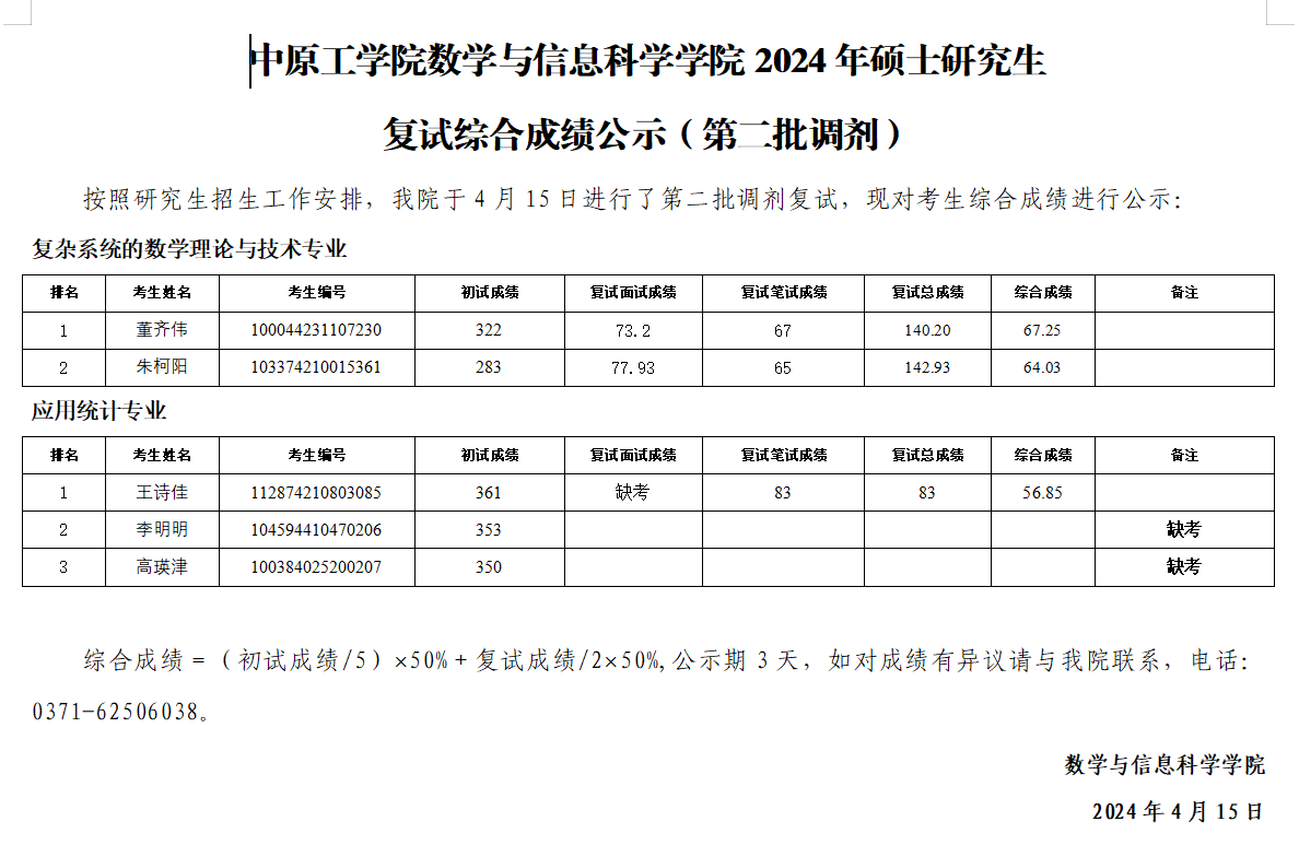 性爱网 2024年硕士研究生复试综合成绩公示(第二批调剂)
