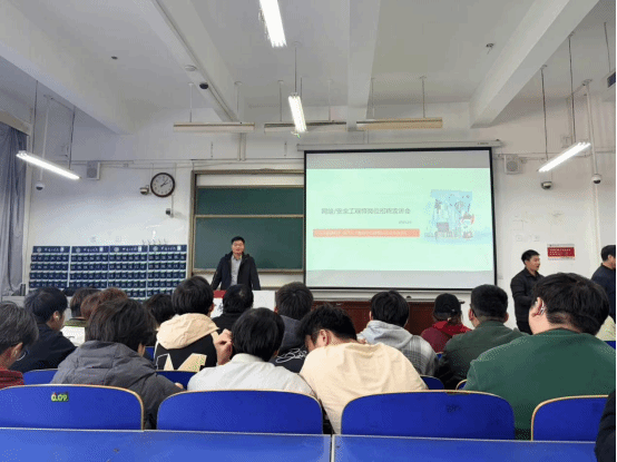 学院党总支副书记杨向宇对公司总经理孟永健一行的到来表示热烈欢迎,并简要介绍了学院在人才培养、学科建设及学生就业等方面的情况。他就进一步加强校企协同育人提出三点希望:一是加强产教融合,提升学生岗位适应能力;二是开展人才共育,结合企业需求完善课程设置,增强毕业生就业竞争力;三是加强就业服务,持续拓展高质量就业渠道,助力学生实现更充分、更精准就业。