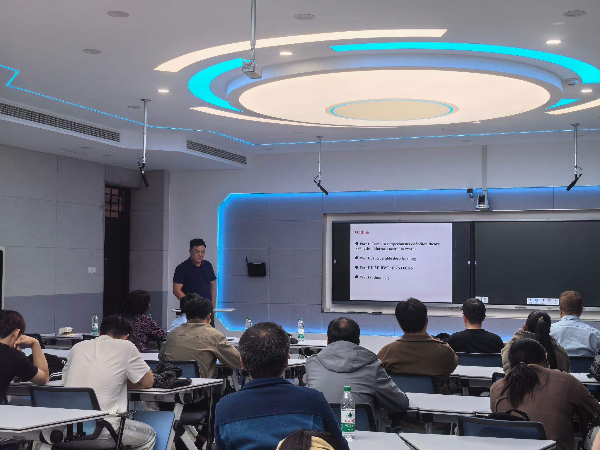 陈勇以“可积深度学习:一种用于提取怪波模式的多项式特征以及Peregrine波定位的深度学习框架”为题,从非线性科学与计算机发展的宏观背景出发,介绍其团队提出的可积深度学习理论框架和研究进展,着重讲解一种基于深度学习的“怪波特征提取器”(PE-RWP)方法。该方法提出了一个创新的两步式解决方案,成功实现了对Peregrine怪波的快速精准定位。